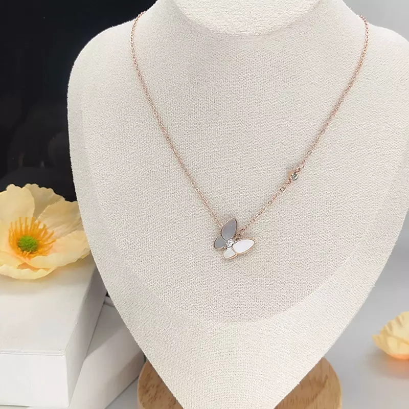 Bílý motýlkovýnáhrdelník z titanové oceli s klíční kostí